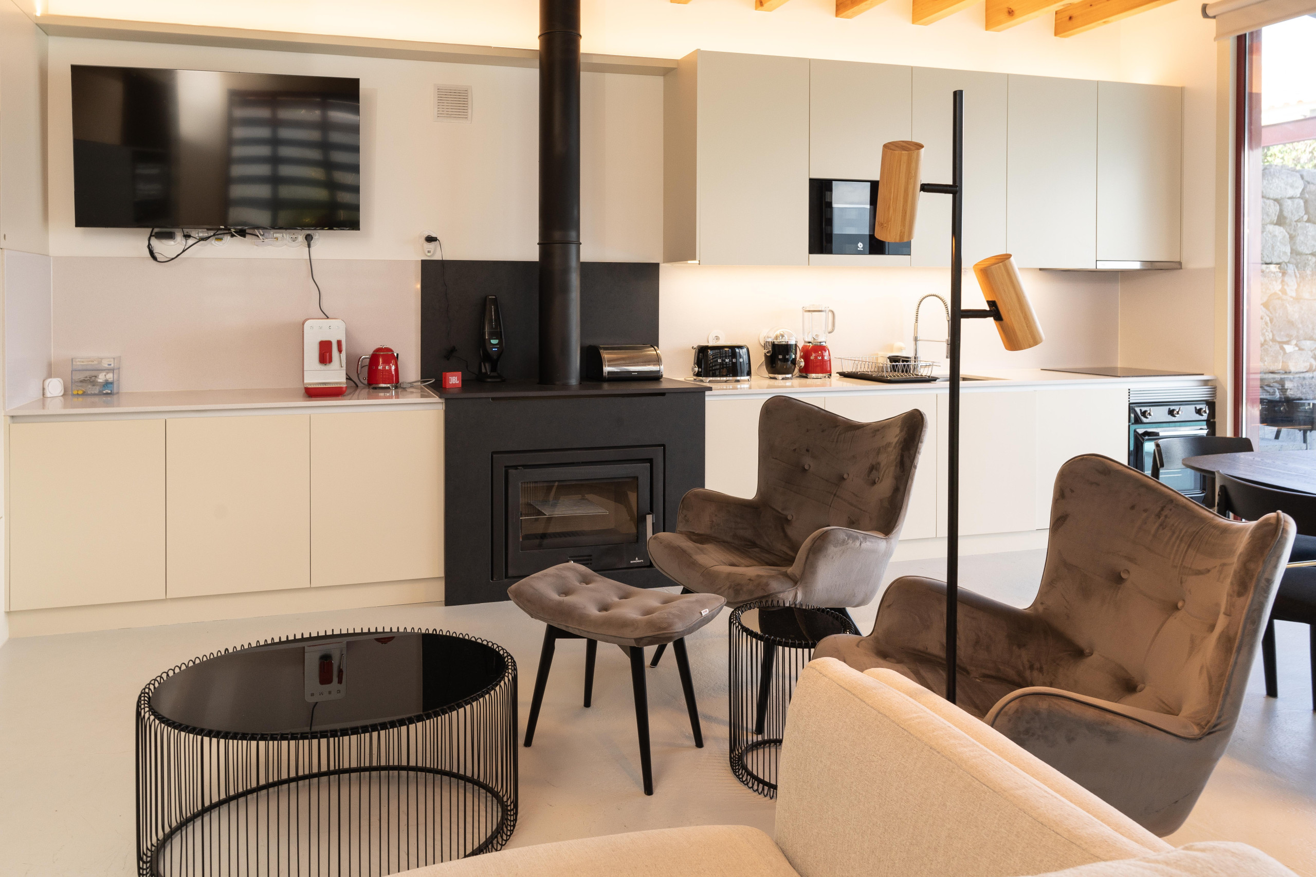 In the induction independent kitchen, refrigerator, microwave, oven, freezer, dishwasher, dishes/cutlery, kitchen utensils, coffee machine, toaster and kettle are provided.